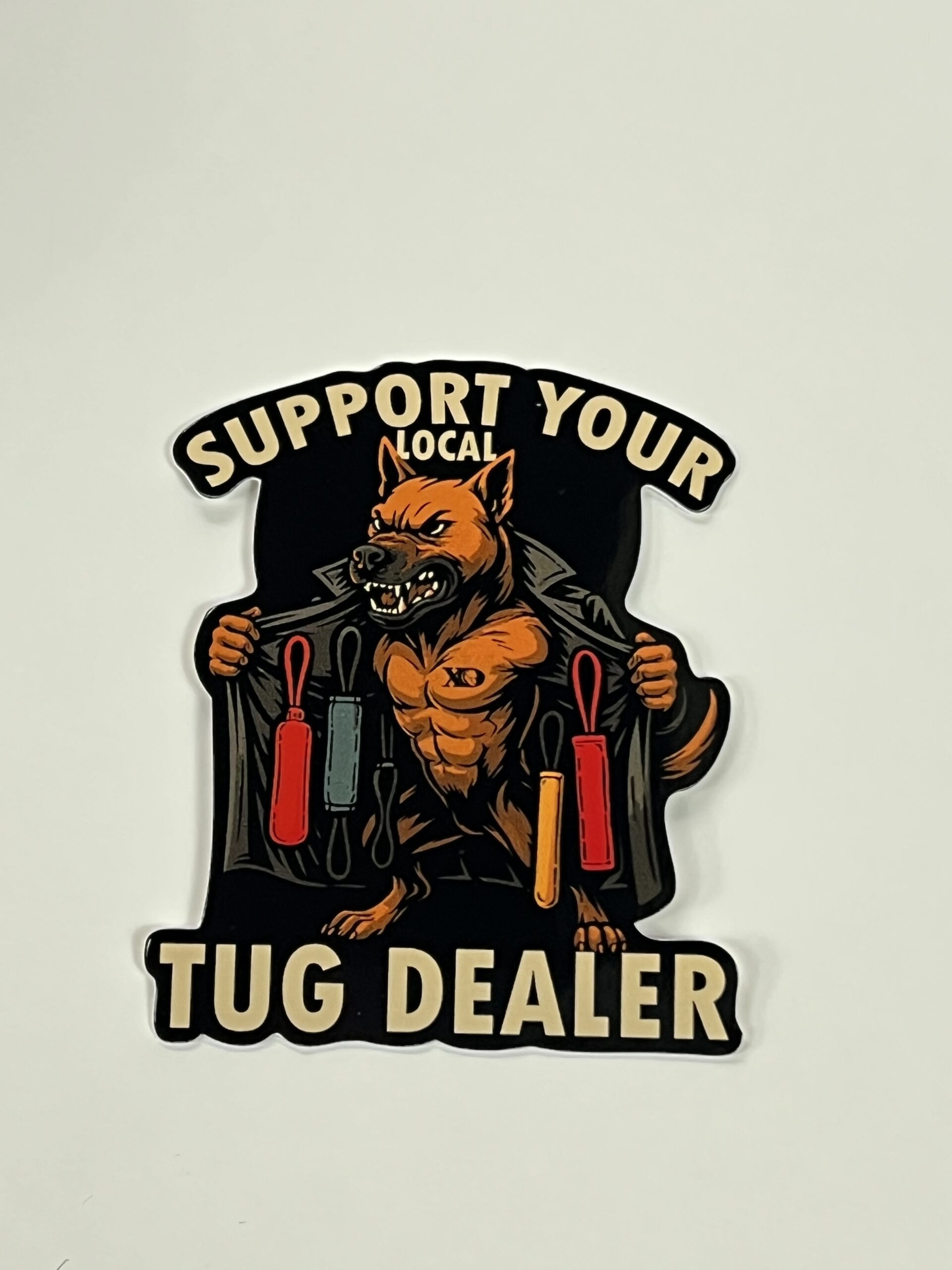 This sticker pops on water bottles, toolboxes, laptops, kennels, and gear bags. Built for dog handlers, trainers, and anyone who lives the tug-life with their working dog.