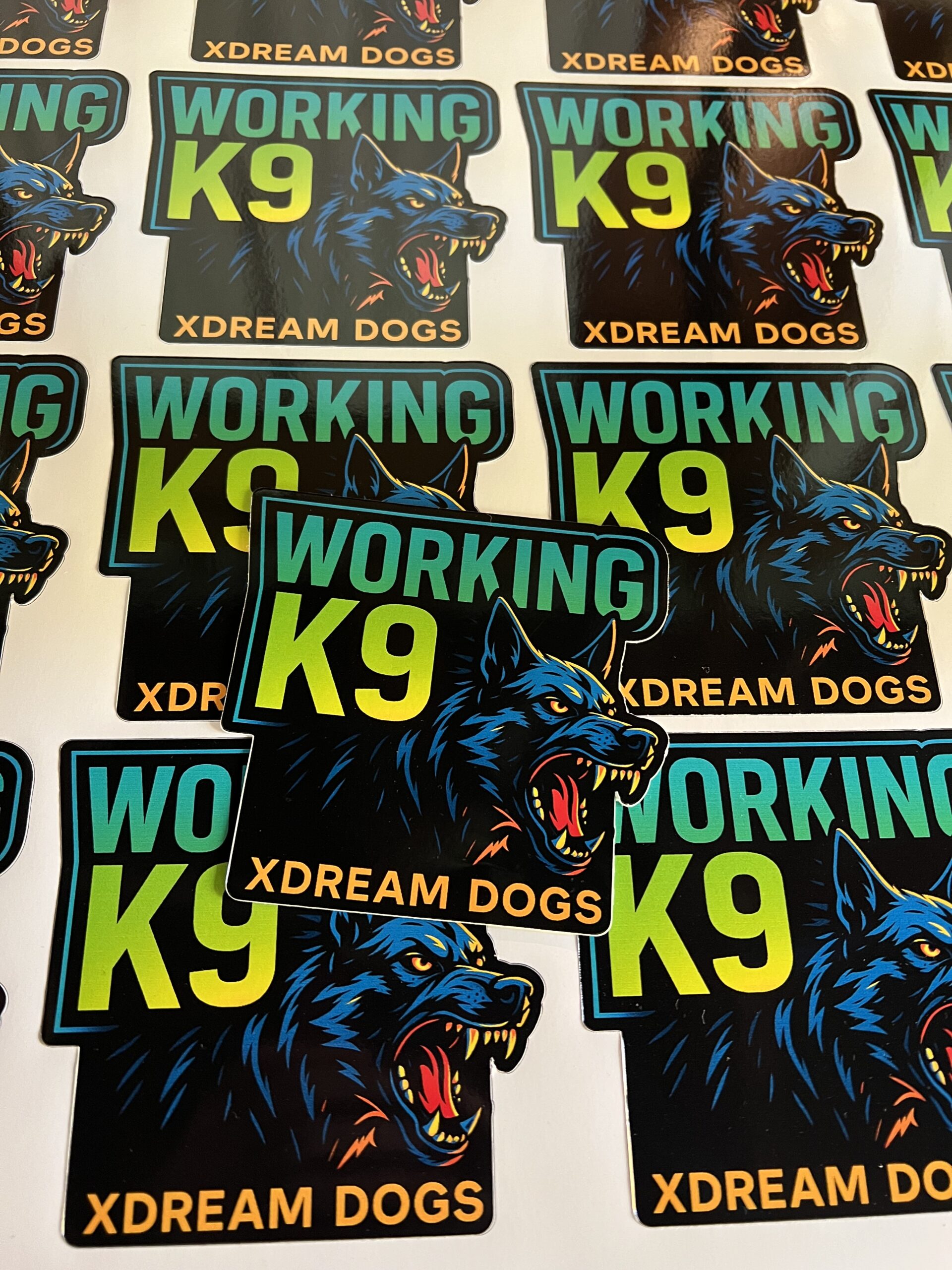 Durable, bright, and ready to stick on crates, kennels, vehicles, water bottles, and training gear — it’s made to stand out anywhere your working shepherd does.